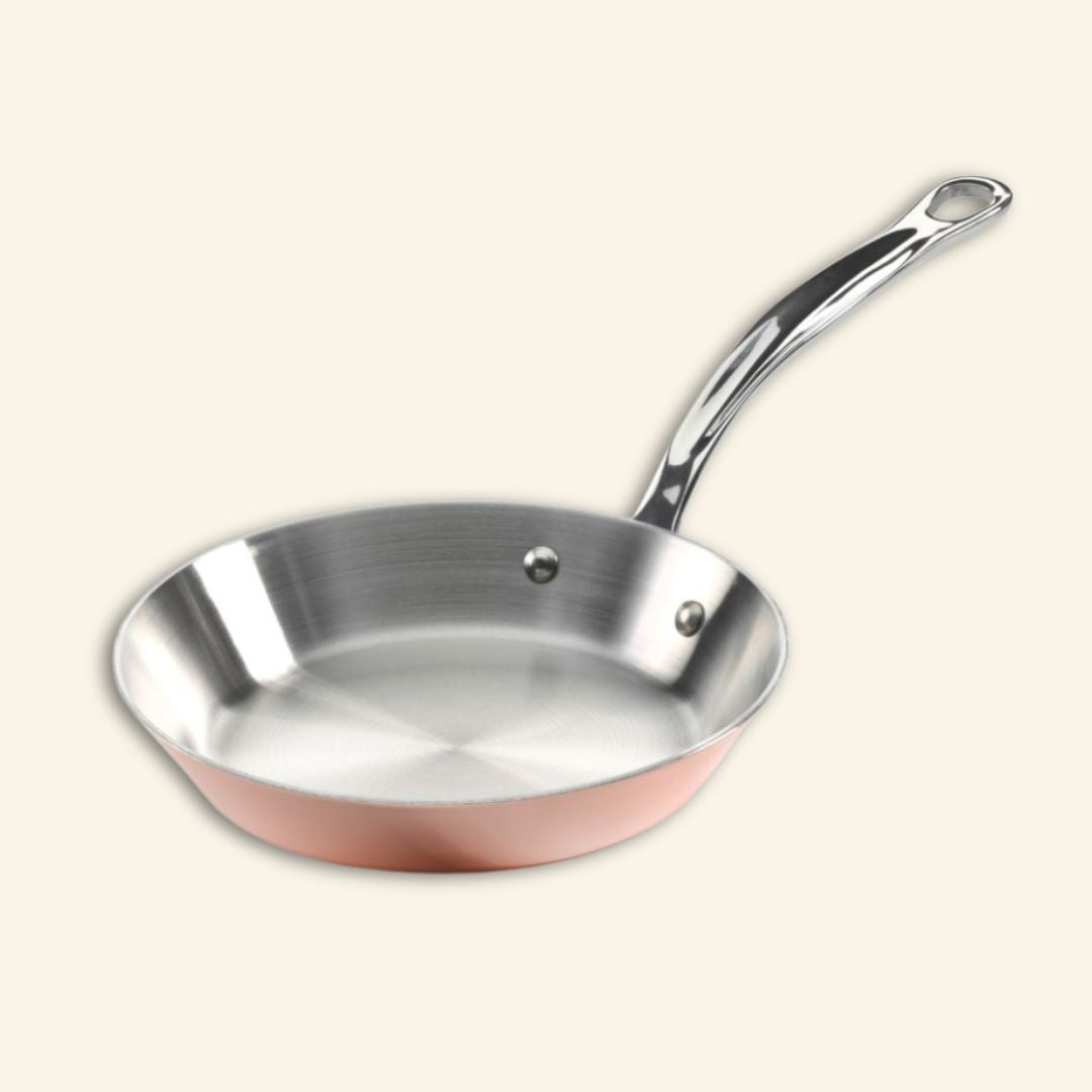 Copper is the best heat conductor among all materials used in cookware production. Copper allows the cookware to reach high temperatures quickly, and cool down as soon as it is removed from the heat source - giving you maximum control when cooking. The heat spreads out evenly throughout the cookware, without hot spots, preventing food from sticking during cooking. The cookware's interior is lined in stainless steel, meaning it is non-reactive to acids and alkalines, and is safe to use and easy to clean.