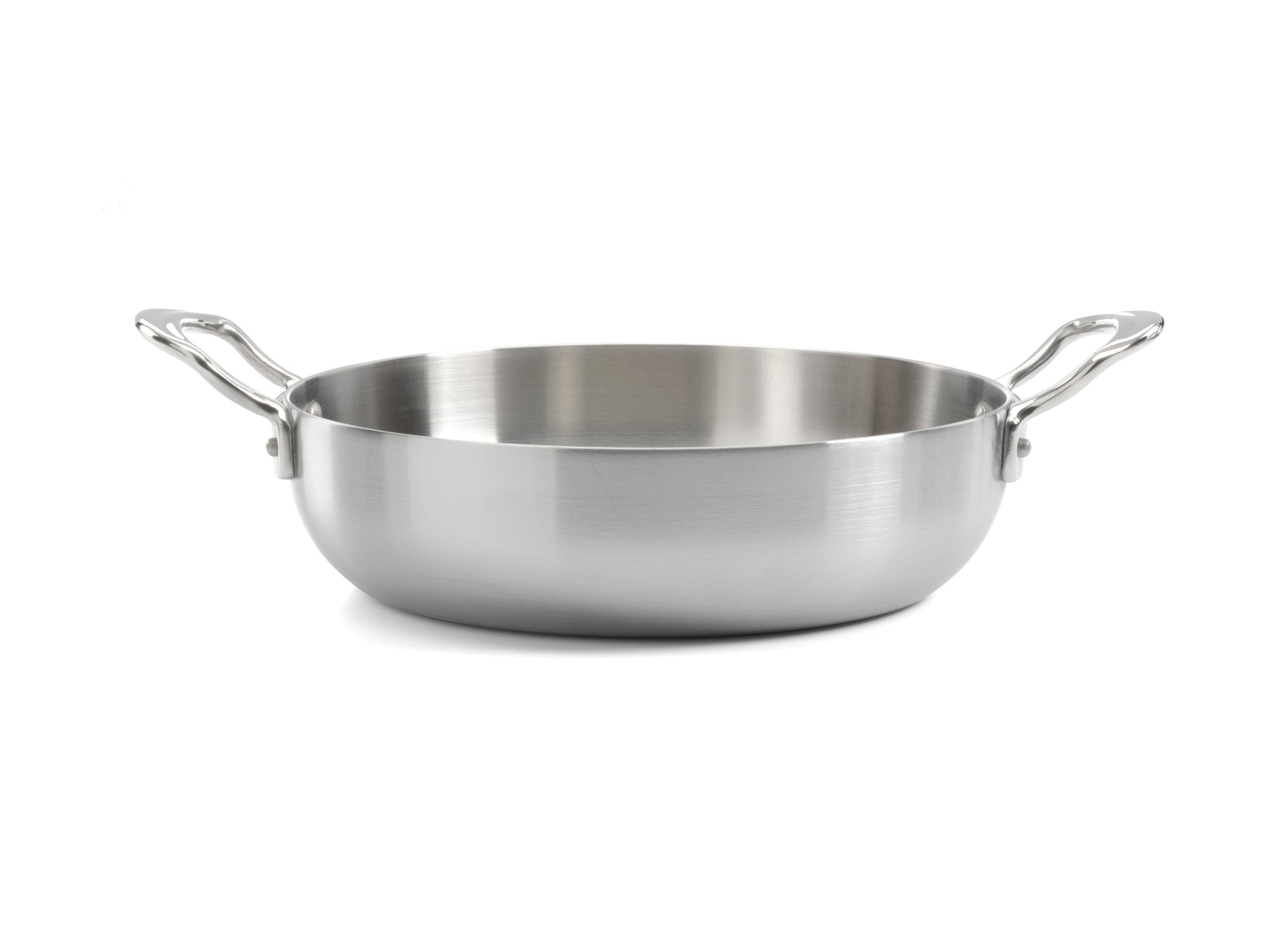 The stainless steel tri-ply chef pan, with side handles is truly versatile, as it combines the functionality of a frying pan or wok and the capacity of a saucepan.