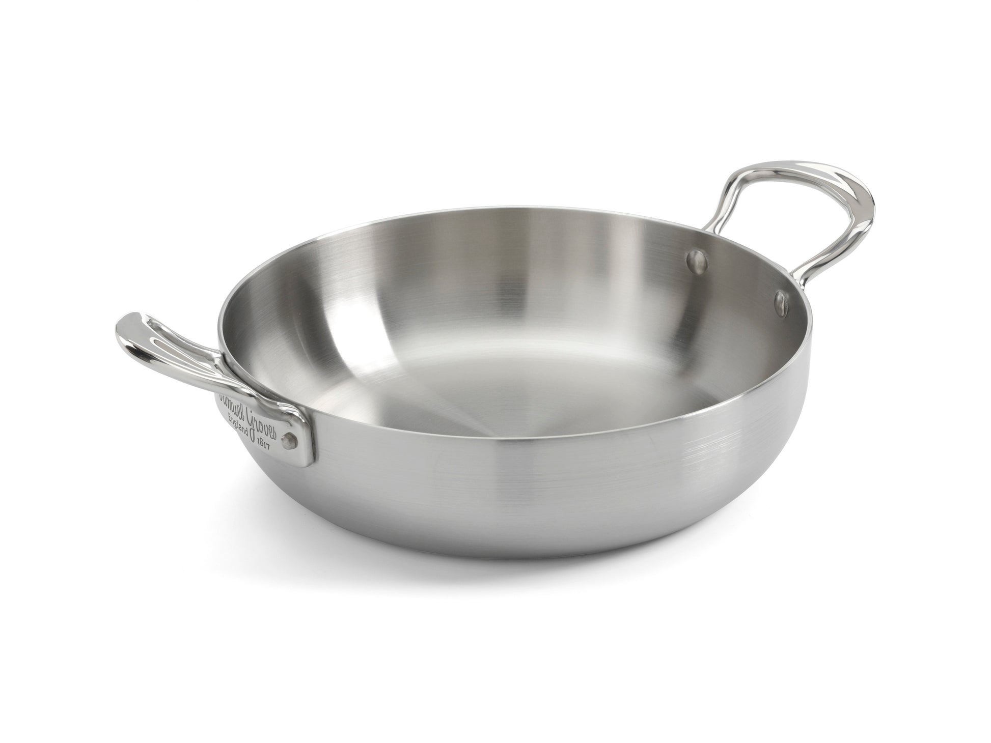 Samuel Groves' tried-and-tested 3 layer, tri-ply design which comprises of a stainless steel exterior and interior, sandwiching a thermally efficient aluminium core. The solid 3mm body makes these pans very sturdy and durable. The outer stainless steel layer protects the cookware from scratching and rusting, and it will not react when it comes in contact with acidic or alkaline foods. The design guarantees superb heat distribution, resulting in consistently great cooking performance.