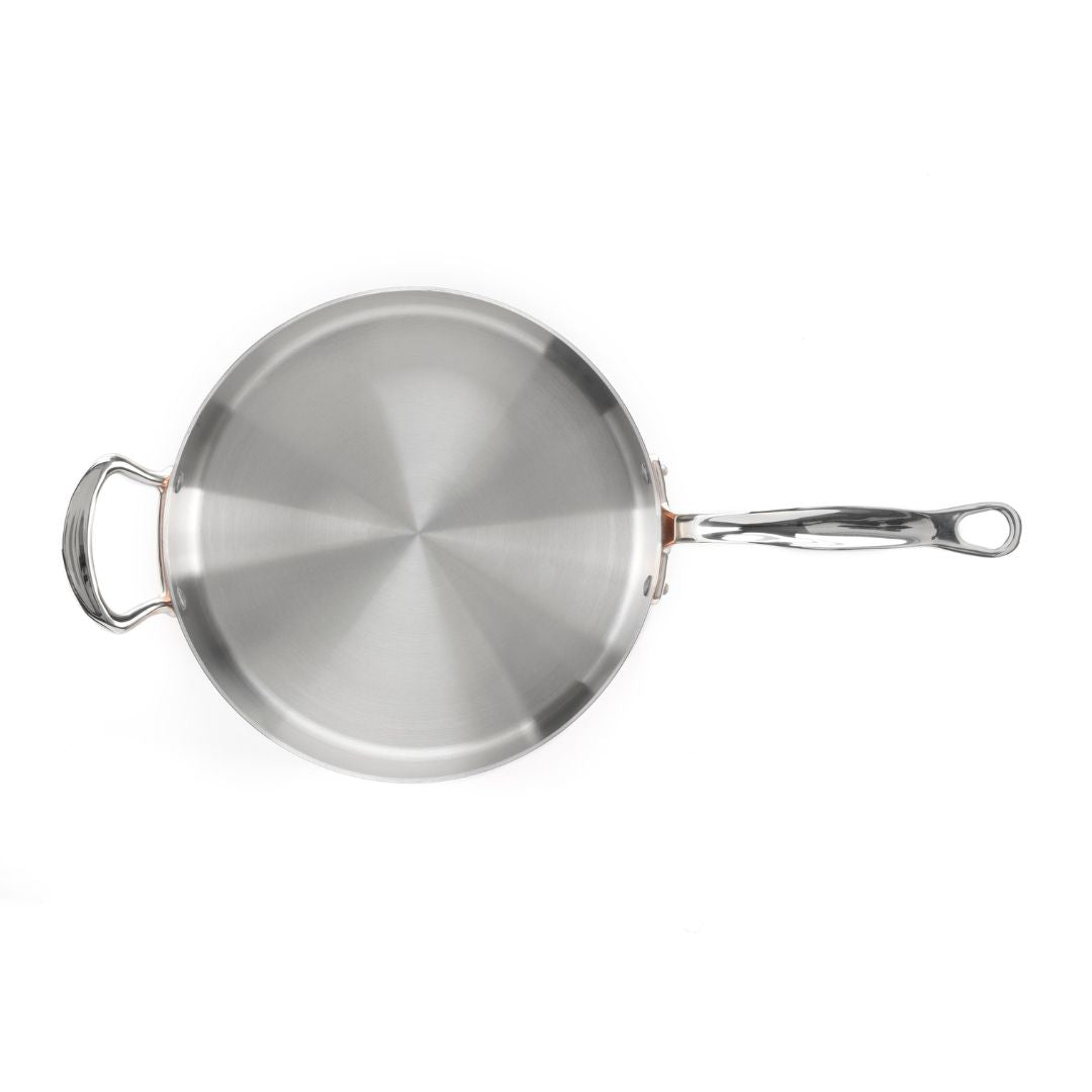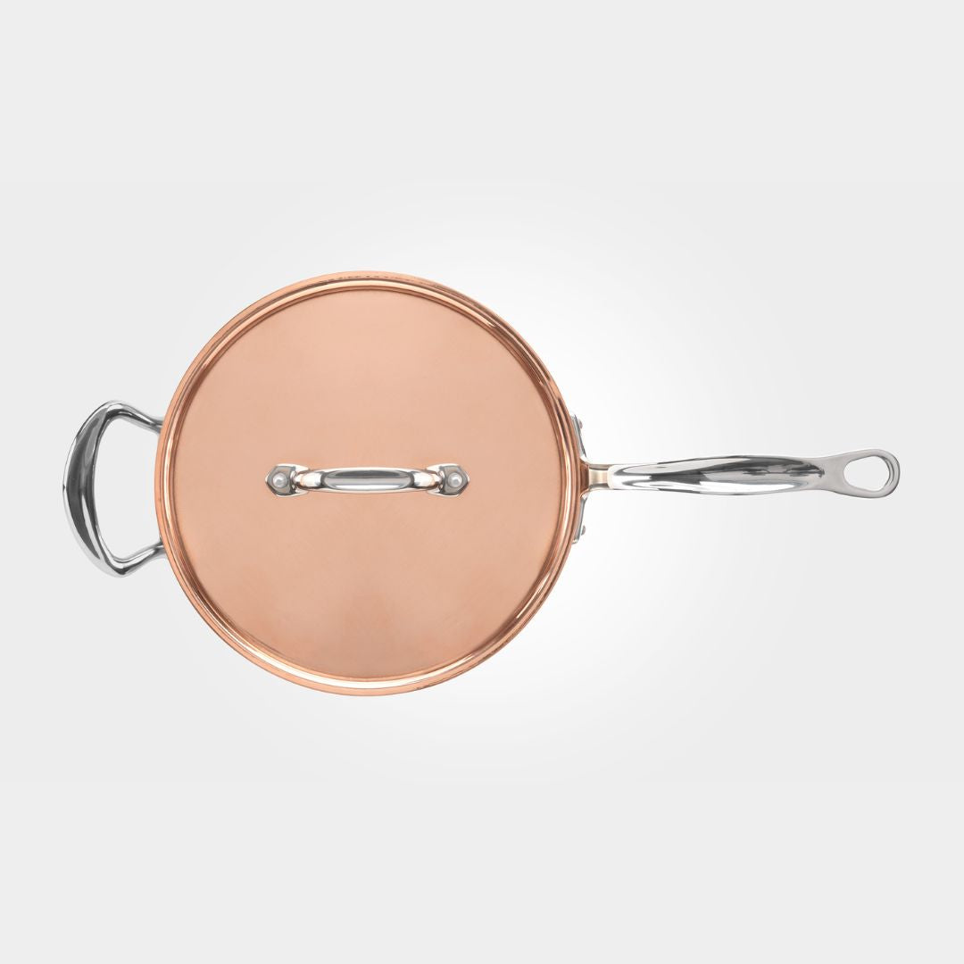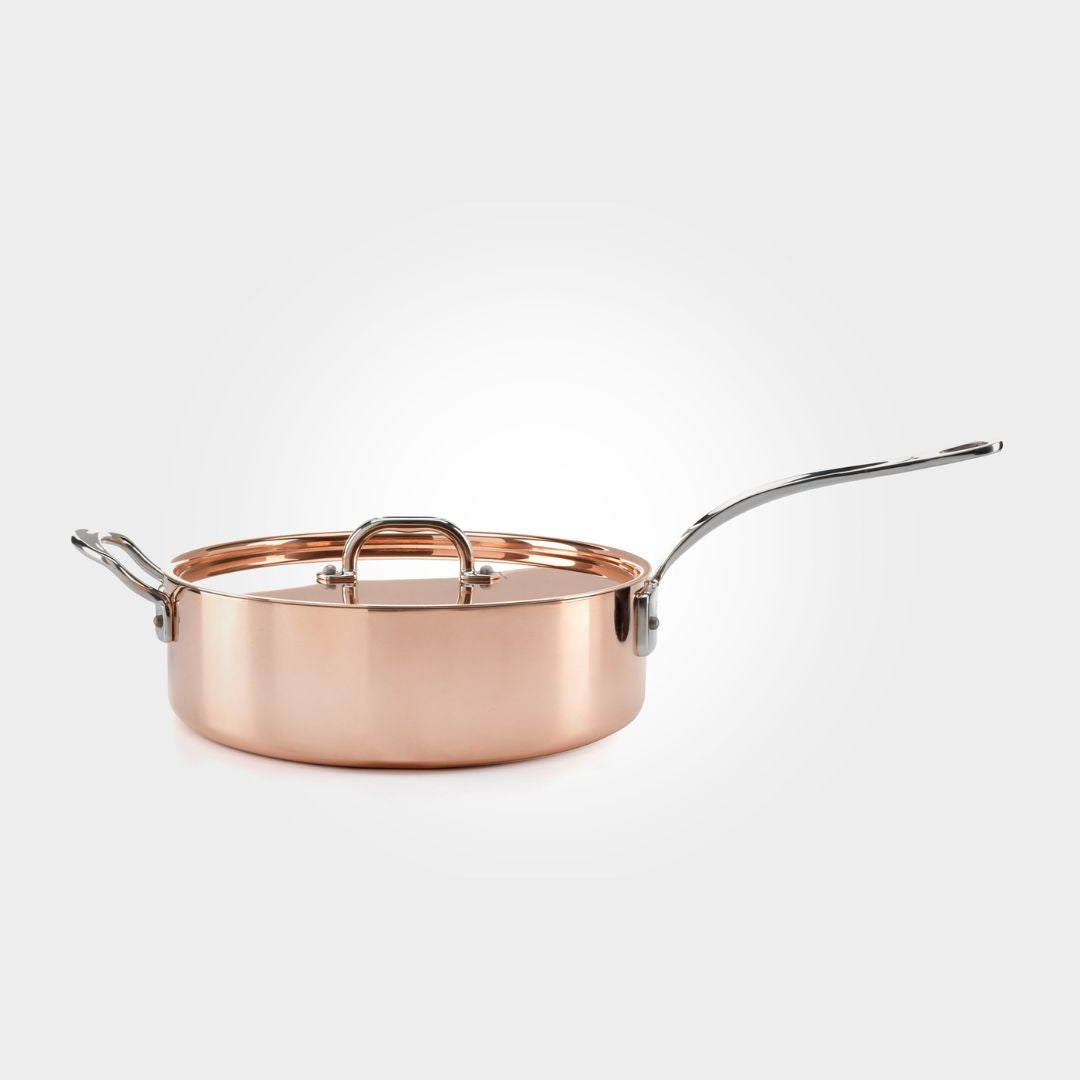 Perfect for cooking a wide variety of foods, the Copper induction sauté pan combines the exceptional heat distribution and retention of copper with the durability of stainless steel. The result is an incredibly efficient cooking tool that can handle any task you throw at it.